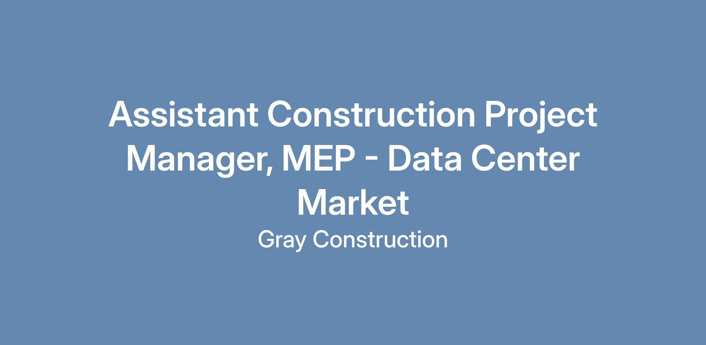 Gray Construction is looking to add an experienced Construction Assistant Project Manager - Data Center Market to join their team in Portland, OR.