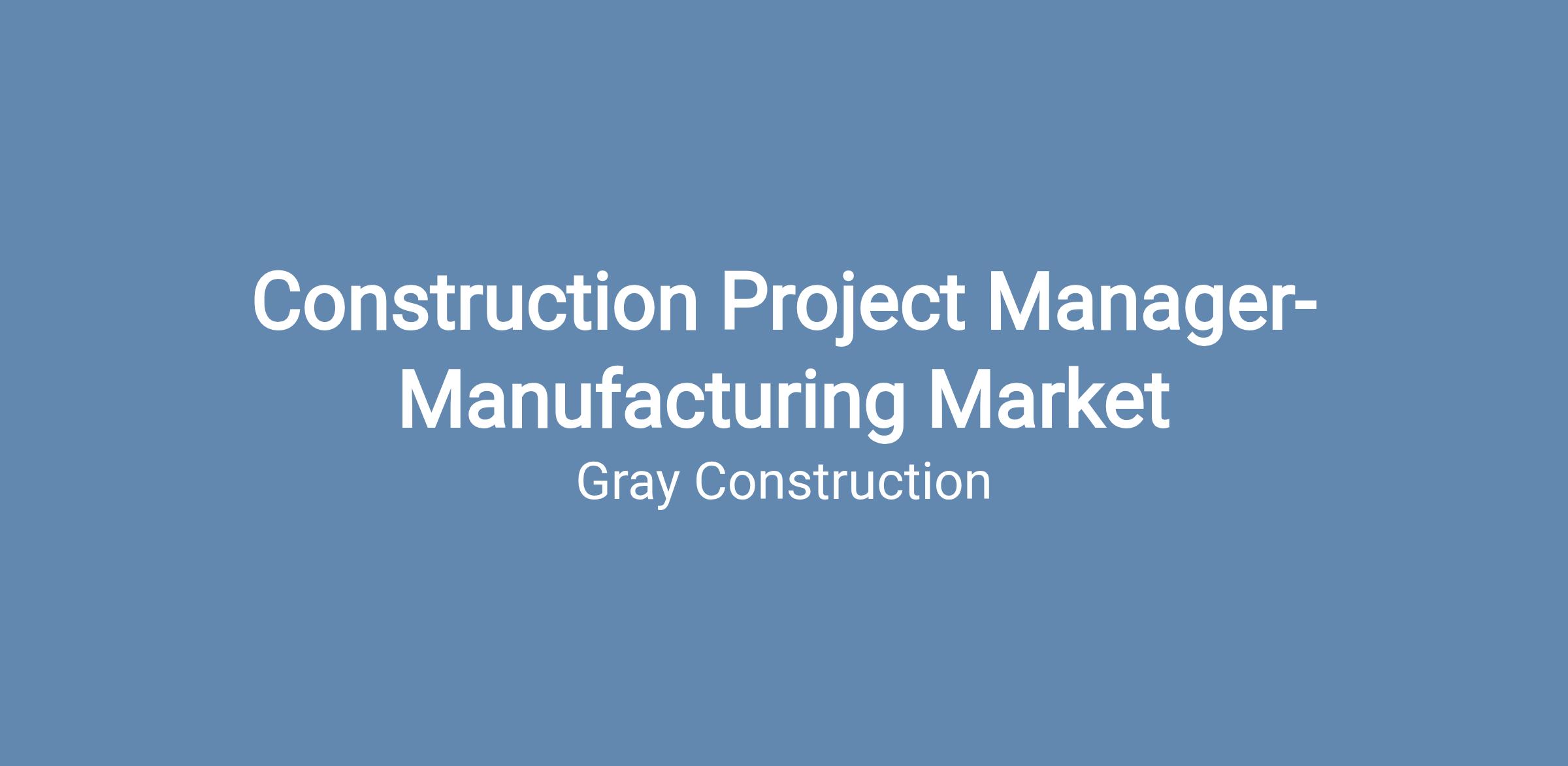 Gray Construction is looking to add an experienced Construction Project Manager- Manufacturing Market to join their team in our Atlanta, GA, Birmingham, AL, Charlotte, NC, Dallas, TX and Lexington, KY office. office.