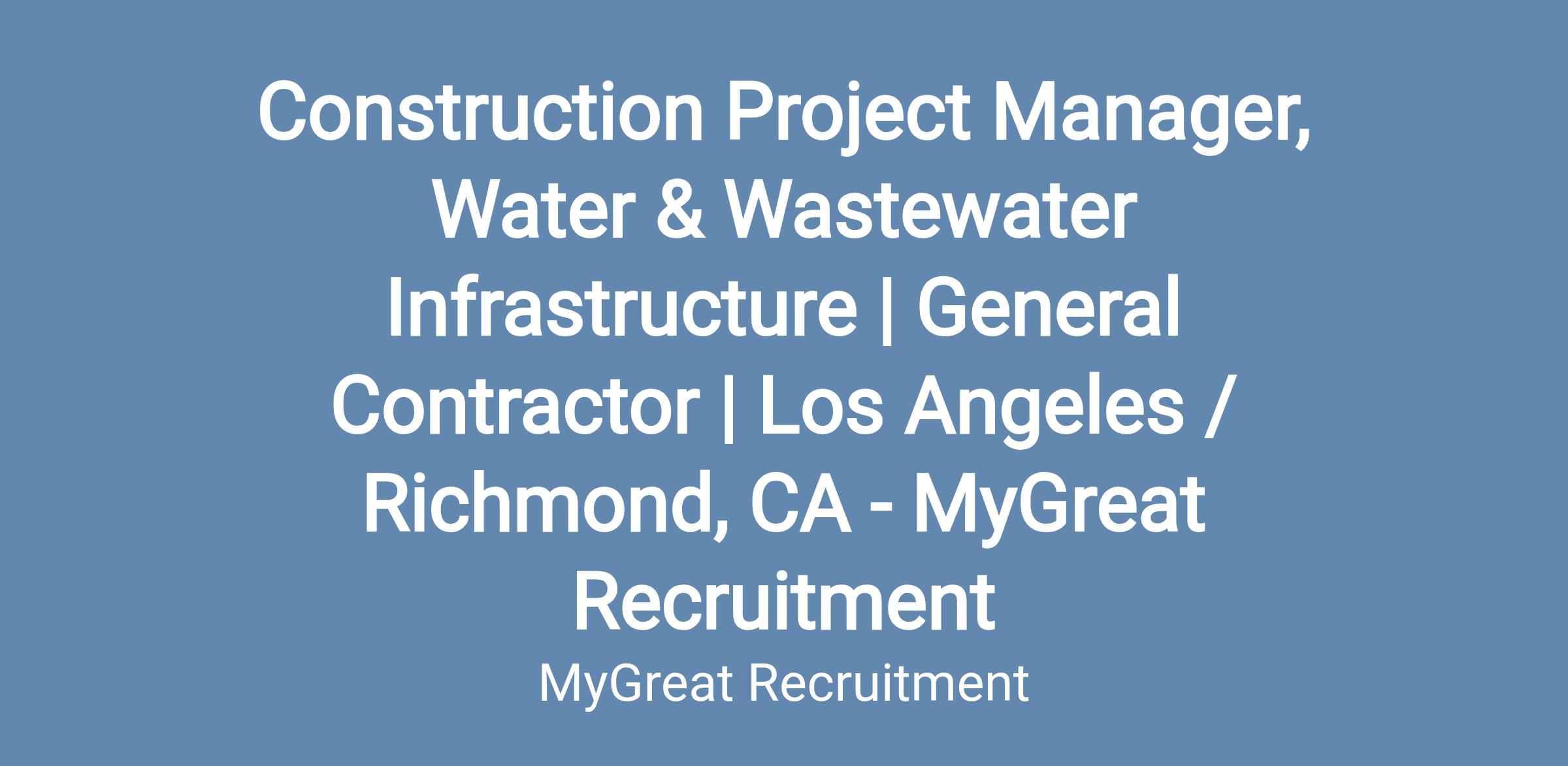 Location: Richmond, CA Compensation: $125,000 - $165,000 USD Overview We are seeking an experienced Construction Project Manager to lead municipal infrastructure projects in the Greater Los Angeles area. The ideal candidate will have a strong background in civil construction, excellent leadership and communication skills, and a proven ability to manage budgets, schedules, and diverse teams. This role offers the opportunity to work on impactful public works projects with a focus on safety, quality, and long-term sustainability. Must Haves