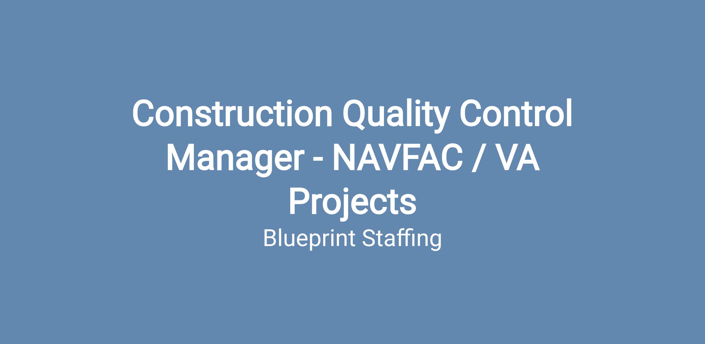 Job Title: Construction Quality Control Manager - NAVFAC/VA Projects