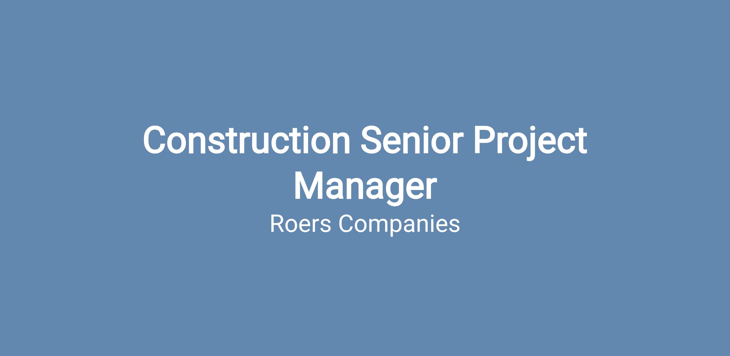 Roers Companies is seeking an energetic, dedicated Construction Senior Project Manager to join our team in Plymouth, MN.