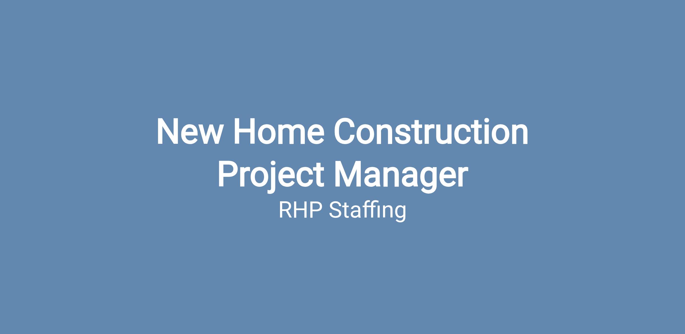 As a New Home Project Manager, you will: