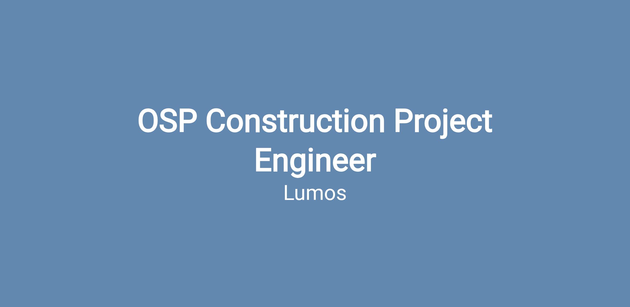Lumos is looking for a full-time OSP Construction Project Engineer! If you are an experienced telecom construction professional, who’s excited for a fast-paced experience, ready to help us grow, and ready to recommend process changes that ensure we’re harnessing our technology to the best of our ability while broadening our ability to set up and maintain our service, we want to hear from you!