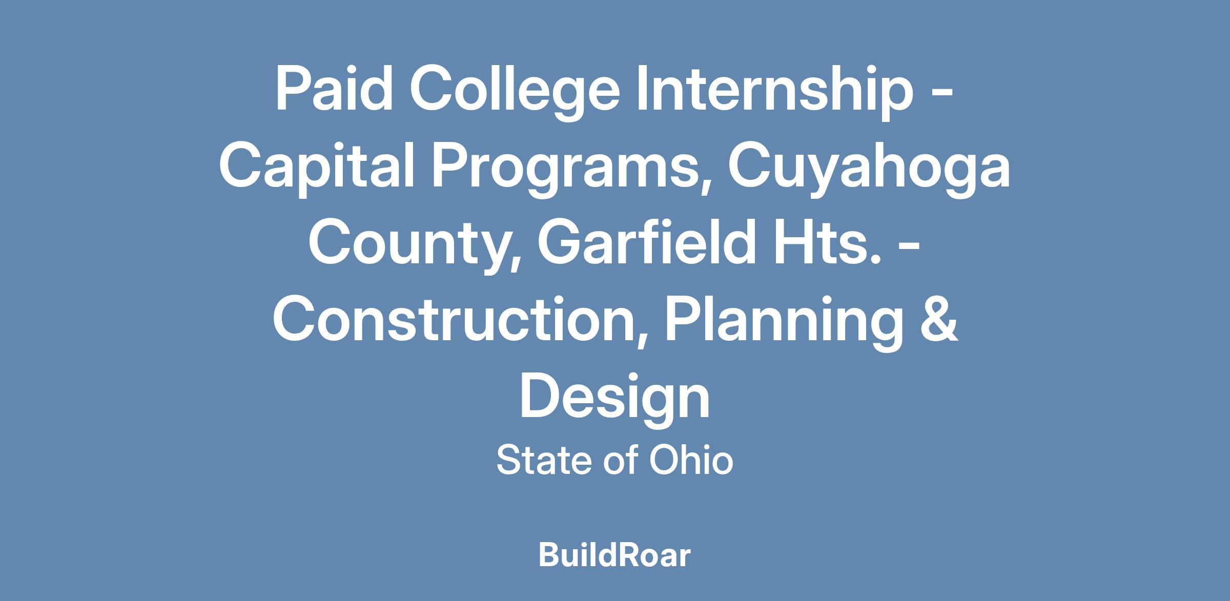 Paid ODOT College Internship\: Capital Programs, Cuyahoga County, Garfield Hts.\: Construction, Planning & Design