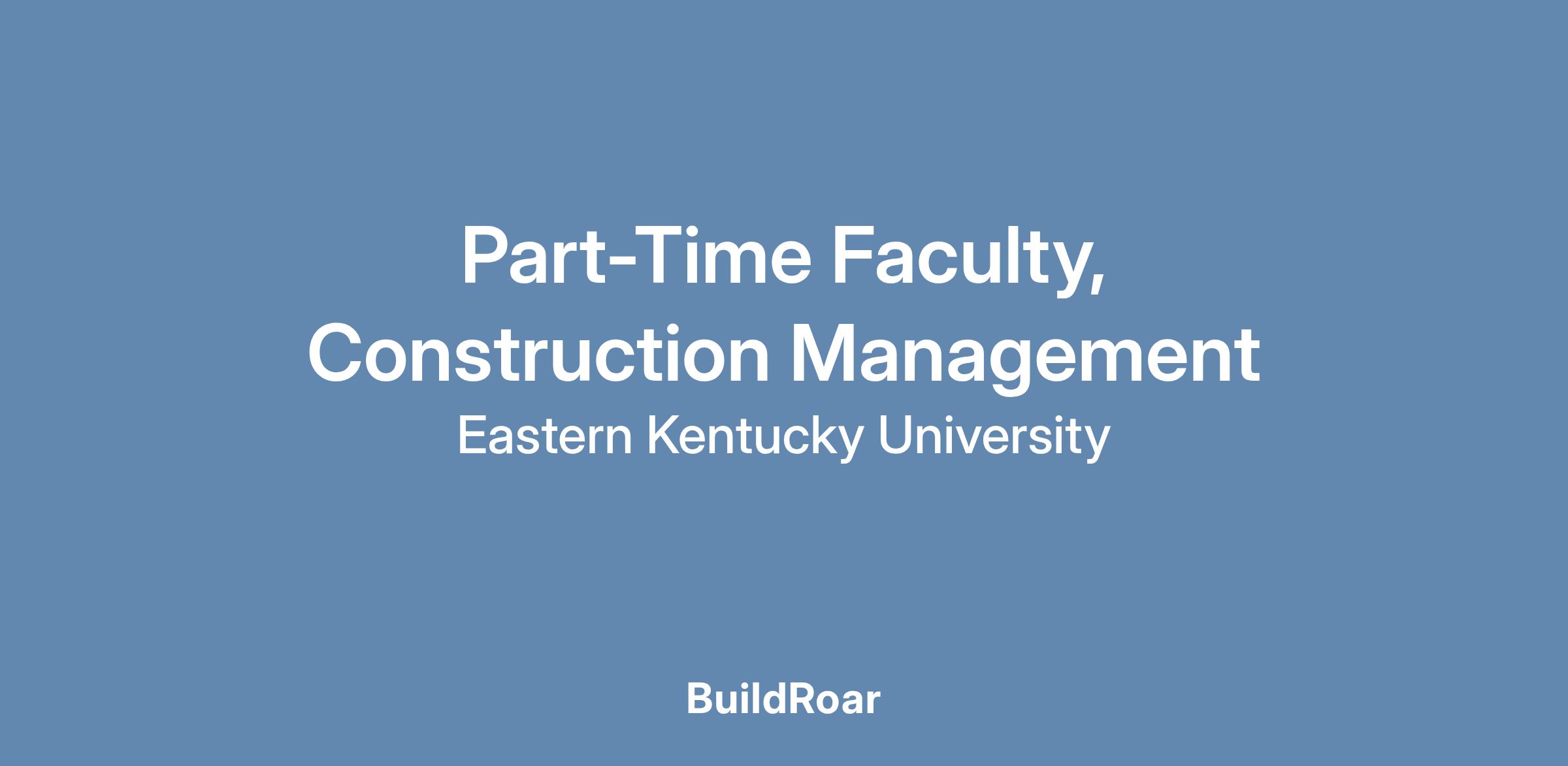 Job Summary/Basic Functions The Department of Justice, Safety, & Military Science at Eastern Kentucky University invites applications for a part-time faculty position to teach courses in Construction Management. |