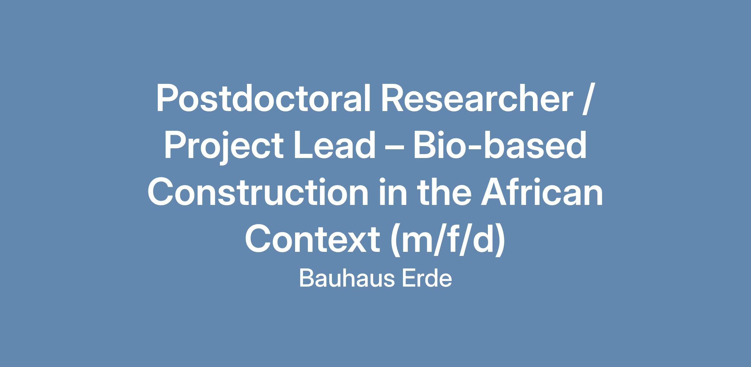 The Material Innovation & Application Team at Bauhaus Earth conducts applied research at the intersection of bio-based materials, architecture, and global construction transformation. We are seeking a Postdoctoral Researcher / Project Lead to contribute to and coordinate high-impact research and demonstration projects in Sub-Saharan Africa.