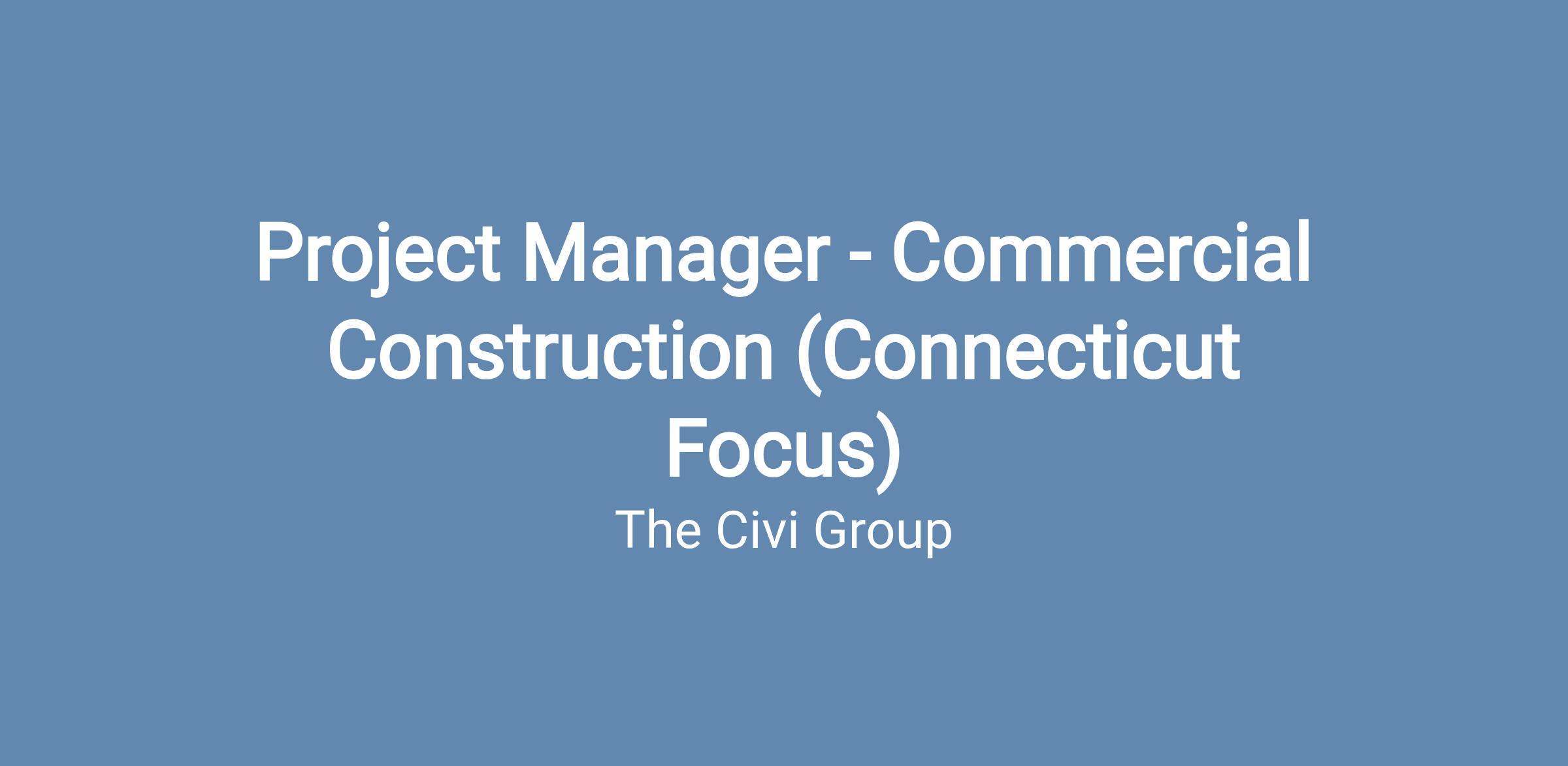 The Civi Group is seeking an experienced Project Manager with a strong background in Connecticut’s commercial construction market to oversee projects in the Hartford and New Haven areas.