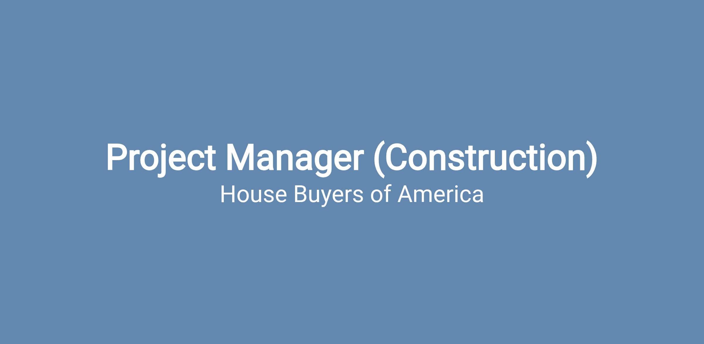 House Buyers of America is looking for a Field Manager who will be responsible for the project management of our home renovations. This person will oversee all aspects of 5-10 projects per month including bidding out jobs, permitting work and ensuring everything is completed according to the project timeline. This person will drive to and work from different job sites scattered throughout the greater Maryland area therefore you must live in Maryland.