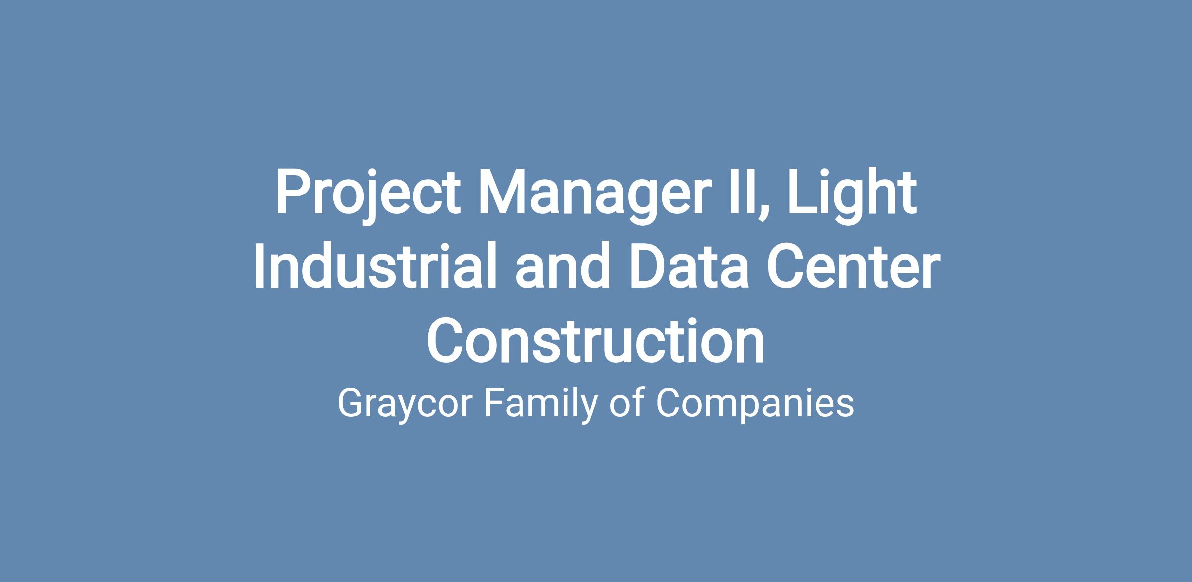 Project Manager II with Graycor Construction Company, you will have the authority to drive successful project results, moving your projects from preconstruction through final closeout in the safest manner possible while maintaining the highest quality standards. The Project Manager will primarily focus within the commercial and light industrial markets, including large distribution centers and general manufacturing projects.
