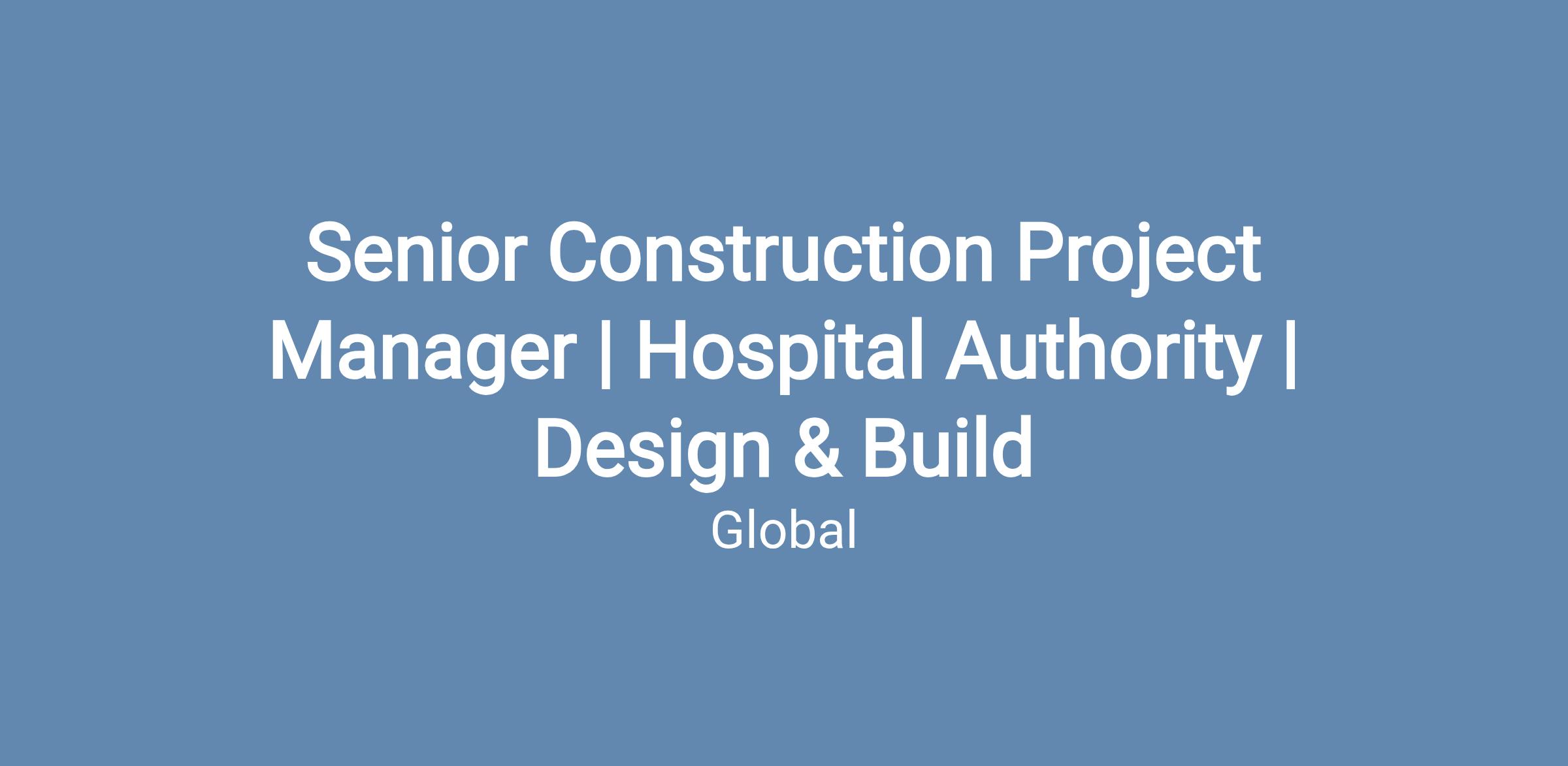 Senior Construction Project Manager | Hospital Authority | Design & Build