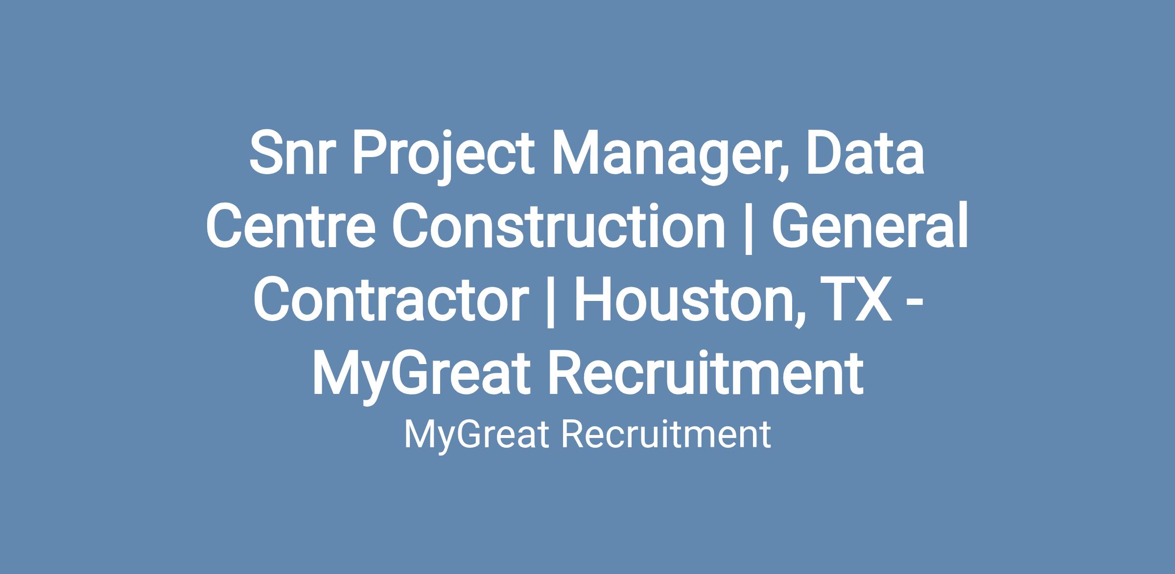 Snr Project Manager - Data Centre Construction Location: Houston, TX Compensation: $170,000 - $205,000 SUMMARY This role is for a Senior Project Manager leading a ground-up data centre construction project in Houston for a general contractor focused on mission-critical work. The position owns full project delivery from preconstruction through closeout and is suited to a Texas-based leader seeking long-term involvement on complex, high-value data centre projects without extensive travel. Must Haves