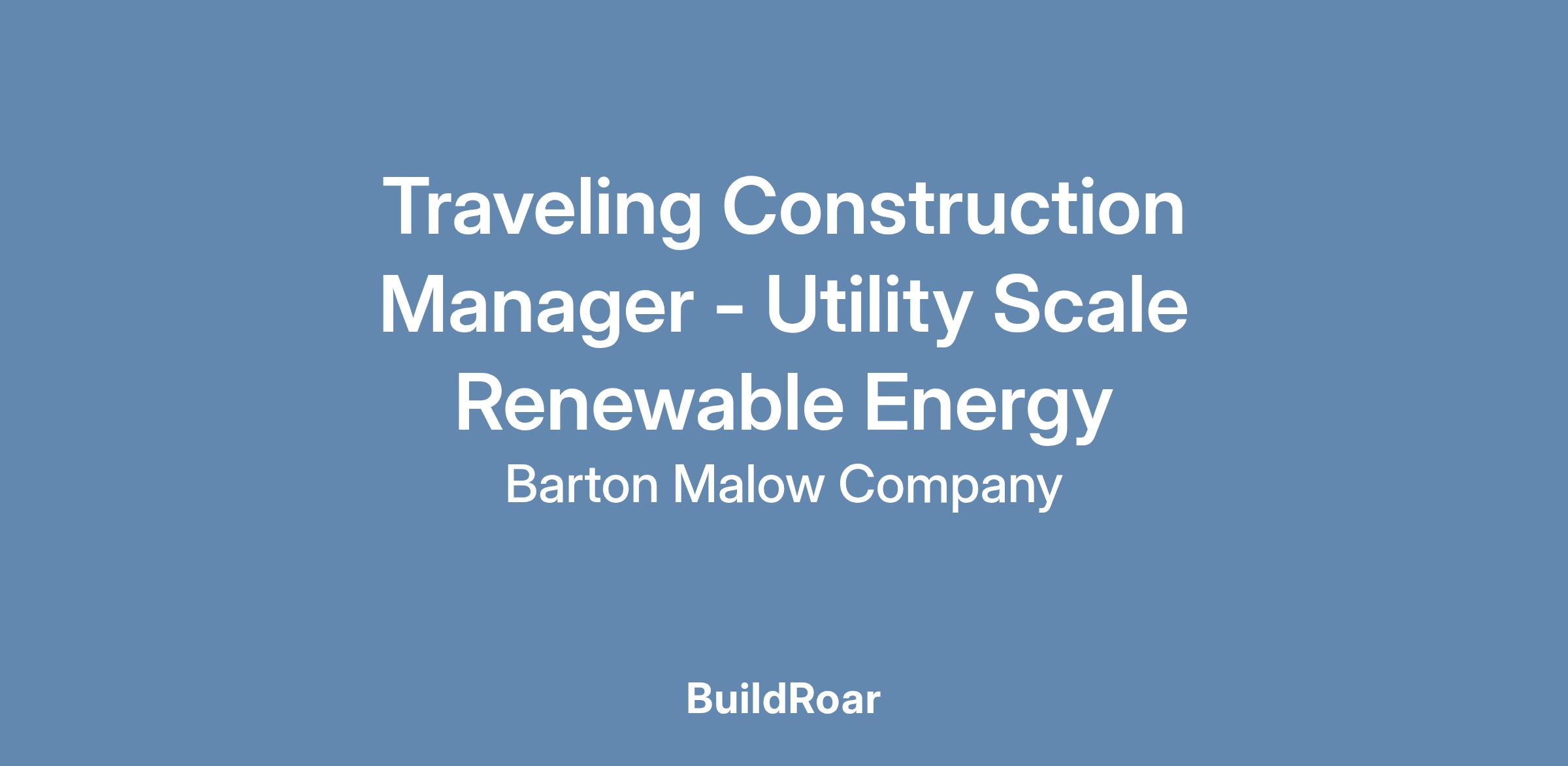 Barton Malow Company is seeking a Construction Manager to join our renewables team on Solar and Wind projects throughout the state of Michigan and throughout the Great Lakes region. The Construction Manager is responsible for oversight of planning, coordination, and execution of construction activities. The Construction Manager will lead project engineers and superintendents to execute construction projects within budget and schedule per the contract documents.