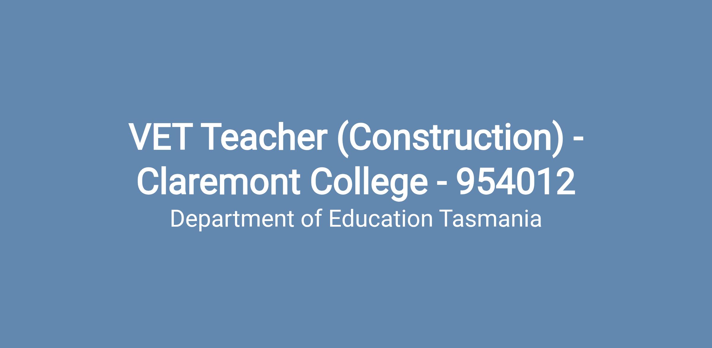 Within this context the Vocational Education and Training (VET) Teacher will deliver and manage appropriate Vocational Education and Training (VET) programs for students, through the provision of instructional and classroom-based activities, and the assessment of individual student progress.