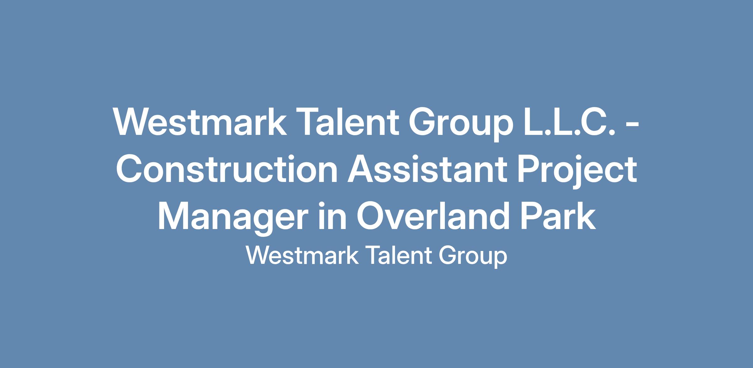 Westmark Talent Group L.L.C. - Construction Assistant Project Manager in Overland Park
